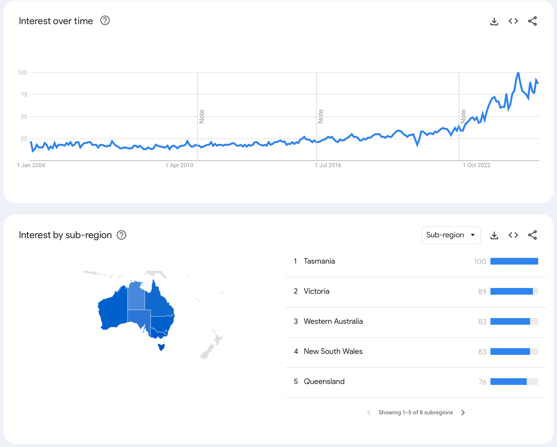 Australian consumers are also taking their interest online. According to Google Trends, search volume for “sauna” in Australia has climbed steadily over the past two decades, with particularly strong interest across Australia’s southern states, with a dramatic spike starting around 2020. That surge happens to align with COVID-era lockdowns, when public wellness services were paused and private, in-home health solutions gained traction.